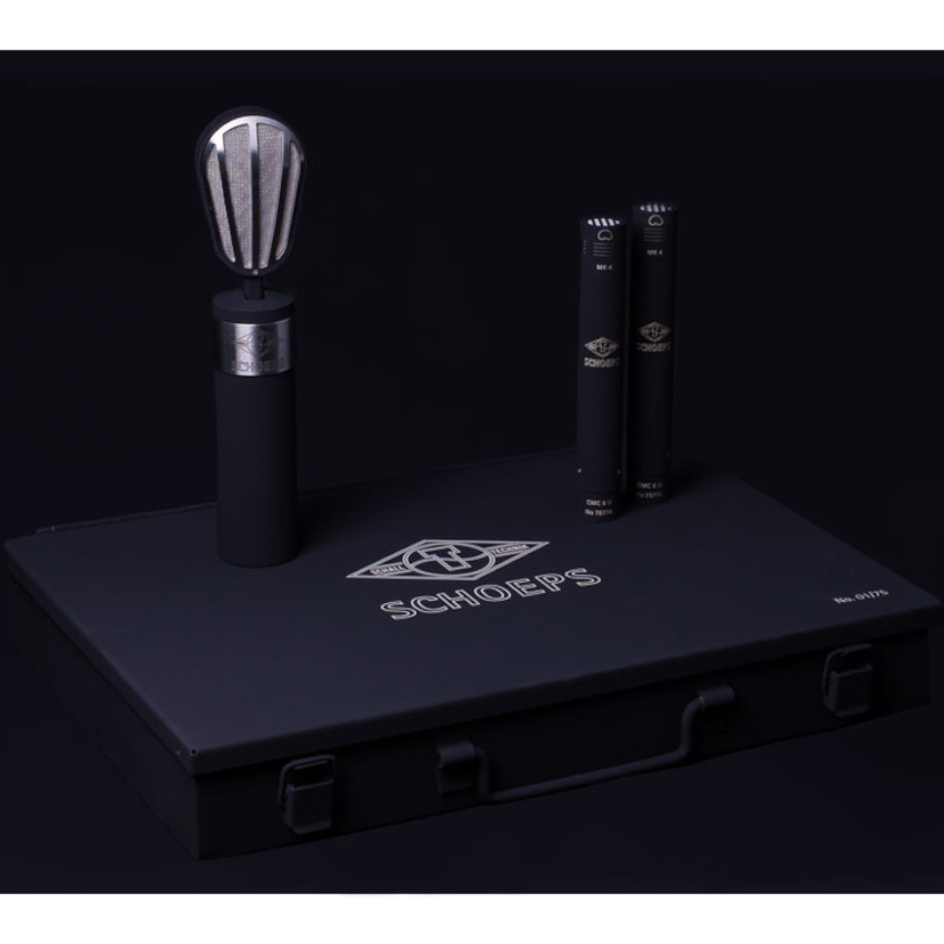 This All Black 75th Anniversery Edition set consists of a V4 studio microphone and a stereo pair of Colette CMC 6 + MK 4 cardioid microphones in a special black finish with the vintage original Schoeps logo from the 1950s. Included accessories: SGV stand clamp and (2) SG 20 stand adaptors. Delivered in a black engraved steel box with a greeting from the company’s owner and son of its founder, Uli Schoeps.