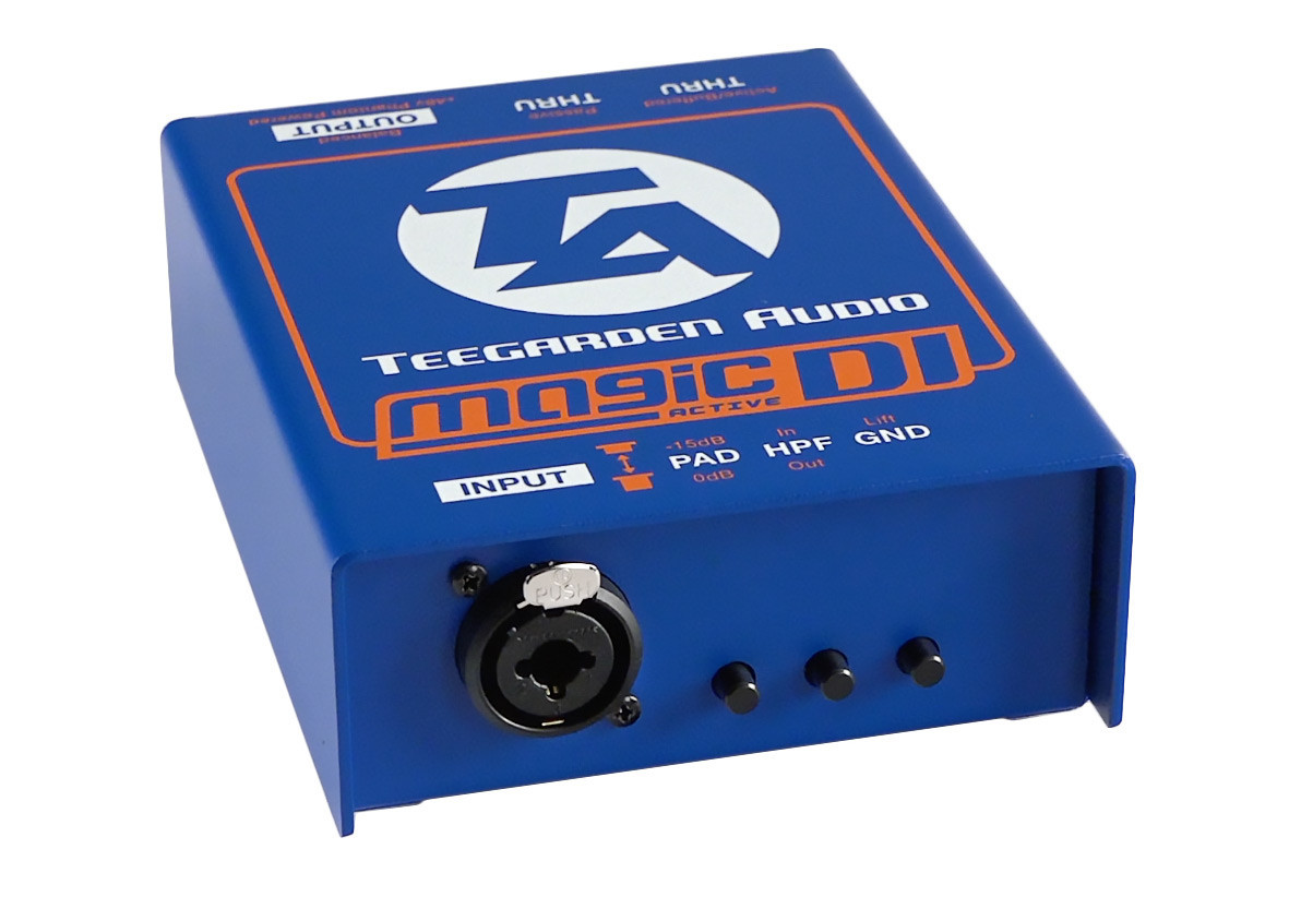 From the makers of the acclaimed Fatboy Tube DI comes the Teegarden Audio Magic DI, a transformerless, balanced, active, direct injection device that offers maximum headroom, low distortion and pristine sound quality. It can accept input levels from passive guitar pickups or piezo transducers up to line level console or preamp levels (-40dBu to 0dBu).